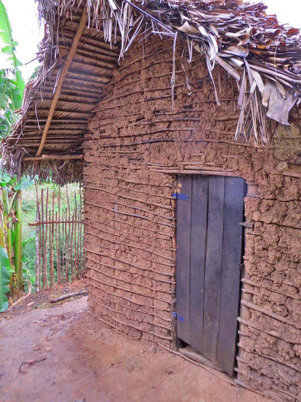 The shed includes the toilet and bathroom Apart from the door and hinges all the materials are gathered from nearby