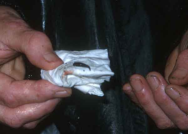 The leech, just after its removal from Joan's eye.