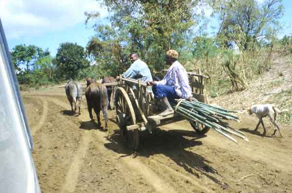 An oxcart is the main transport in rural areas.