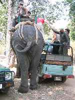 An elephant will collect four people at a time and ferry them in search of the tiger.