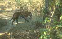 A few minutes later the tiger reappeared walking away up a fire break.