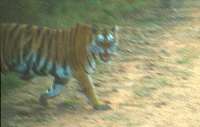 Suddenly there he was. A young tiger fleeing up the hill on our left.