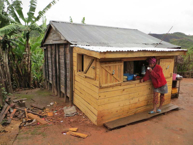 This house is one of a cluster by the roadside They have added an extension as a kitchen - and offer drinks for sale