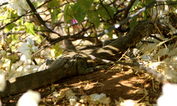 Dan's big lizard. Dan was sunbathing when he noticed this under a bush beside him.