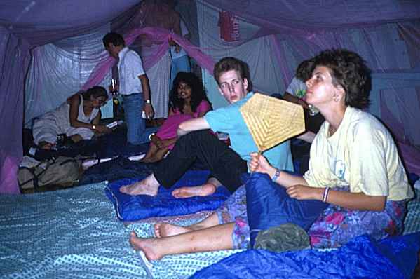 We slept together inside a huge pink mosquito net