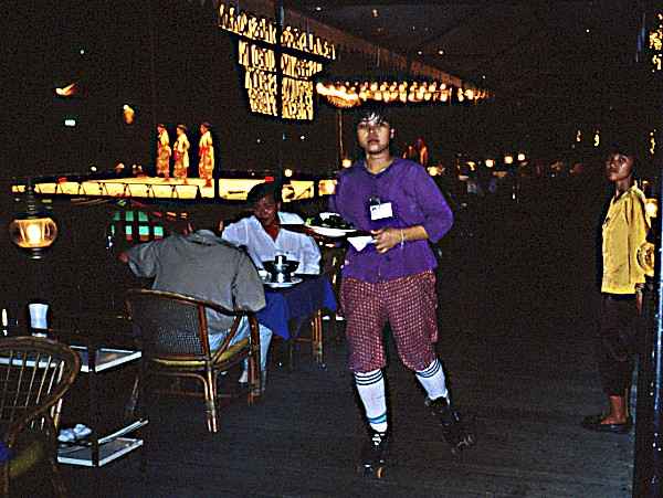 Roller-skating waitress in the Tumpnak Thai. Claimed to be the world's largest restaurant.