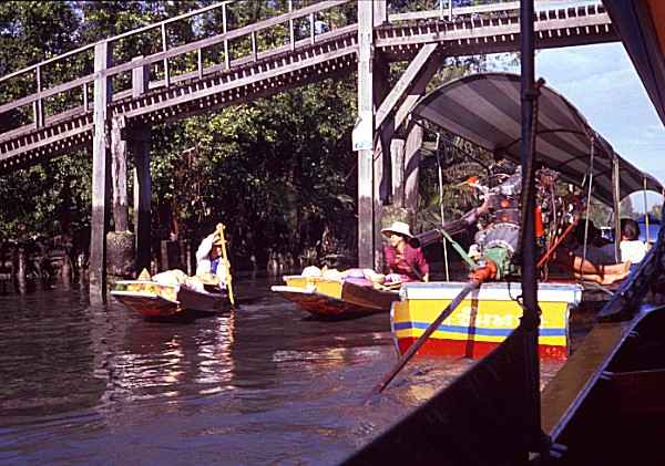 Vendors operating from small boats on the klongs