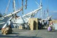 unloading cargo. We stayed a while, watching as gangs of boys and men carried