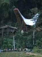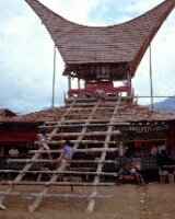 From there it was only a short distance to a tongkonan on a small hilltop where we were to spend the night. The accommodation was comfortable if a little cramped and the surroundings enjoyable. The bad news was dinner: a horrible dish of boiled fish heads and plain rice. Nearly all our party we just ate boiled rice and a few bananas. Afterwards Joan, Becky and myself sat for a while under a rice-barn tongkonan and just enjoyed the atmosphere of the night before finally turning in.