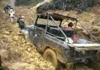 Today's start began at 8:00 for 9:30 start in a column of 4wd vehicles. The country seemed very peaceful and near the road it was dominated by rice paddies. We liked the groups of children making their way home from their "two-shift" schools. They were immaculate in their uniforms and we particularly liked the ones who were carefully carrying their shoes as they walked along the stony roads. These roads seemed fairly good at first, but as we approached our destination there was a fairly substantial river to ford. Ours, as the oldest and presumably the most expendable vehicle, was used as a trial. The fact I am writing this shows it succeeded and the other vehicles followed.