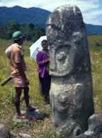 The next day was a 6:30 start for breakfast, then the airport and a plane to Palu in the north of the island. (The Nelles Indonesia 6 map is useful: if you wish, you could have a look at the Palu section in a second browser window ) As the plane climbed out over the sea we could see hundreds of little sandy islands all around the main island; some were tiny and actually under water, others had huts on them. As we flew north and came inland again the scenery turned to mountains covered in trees. There were occasional huts in clearings and no roads visible. This was the country we had come here to traverse. The final descent to Palu was along a valley with small fields and just one road. The Palu Golden Hotel was amazingly modern and well equipped and had a swimming pool as well as being on the beach.