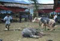decorated. In the square were tethered perhaps eight or nine water buffaloes
